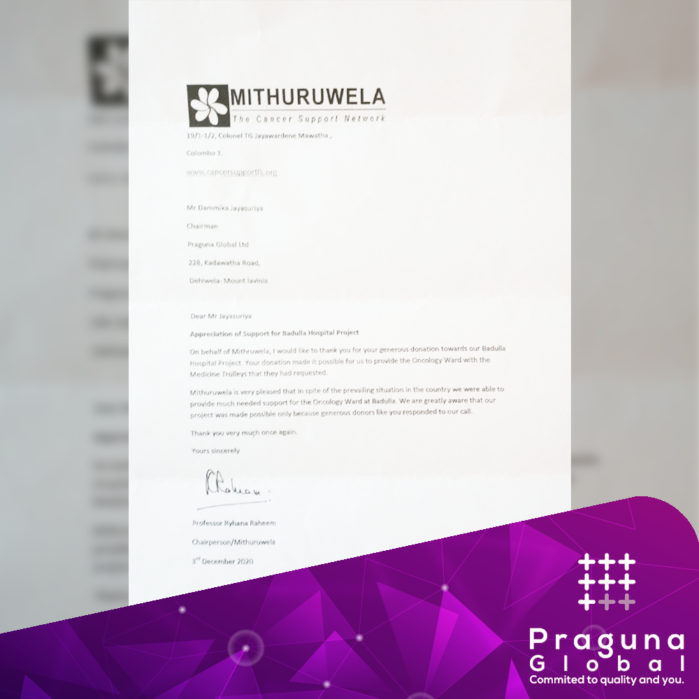 Praguna Global donated Mosquito nets for the 58th infantry division of Sri Lanka Army, under Christmas celebration & new year CSR initiative. The nets were distributed among the low-income families and appreciated by the General officer commanding 58th infantry division Major General Priyanka Fernando.